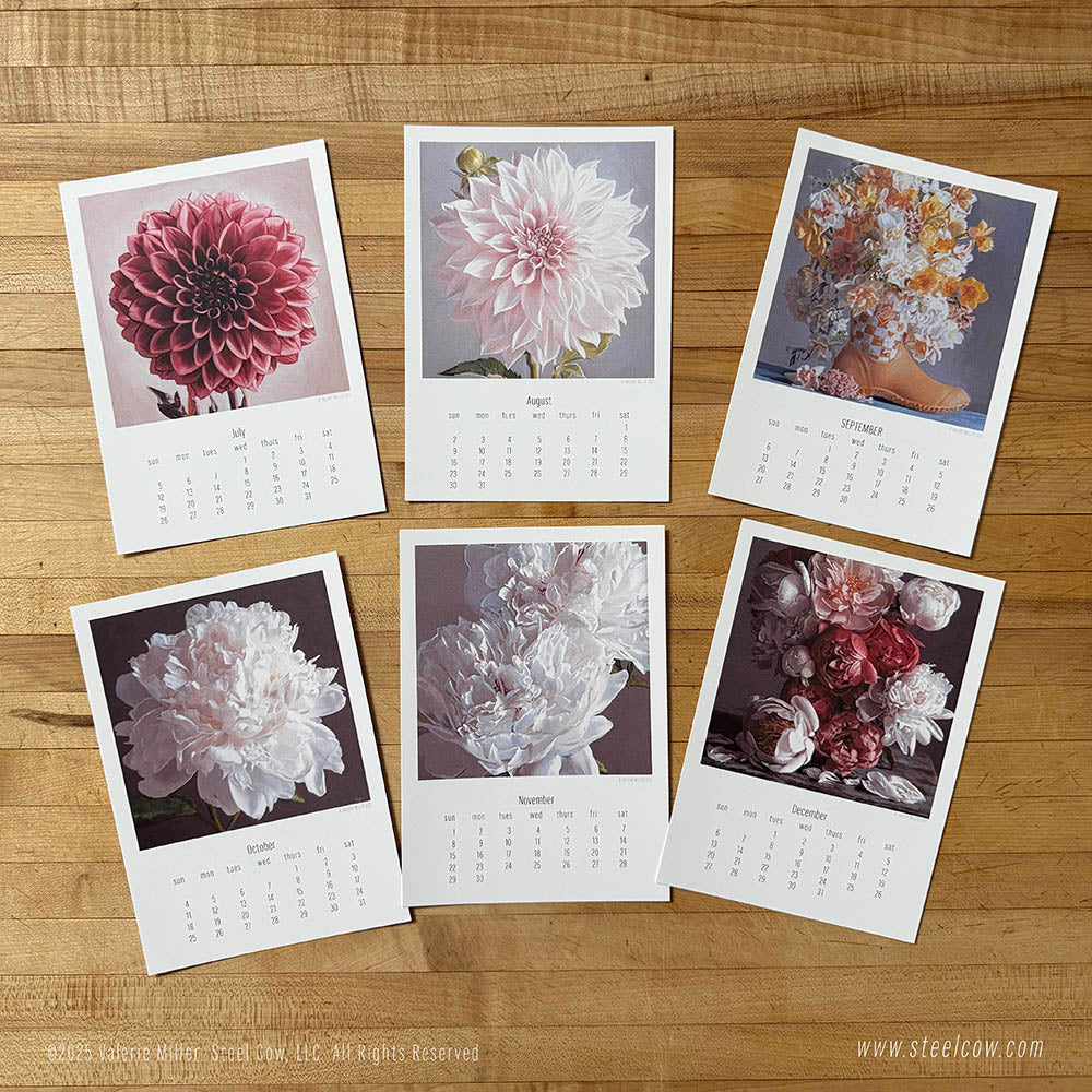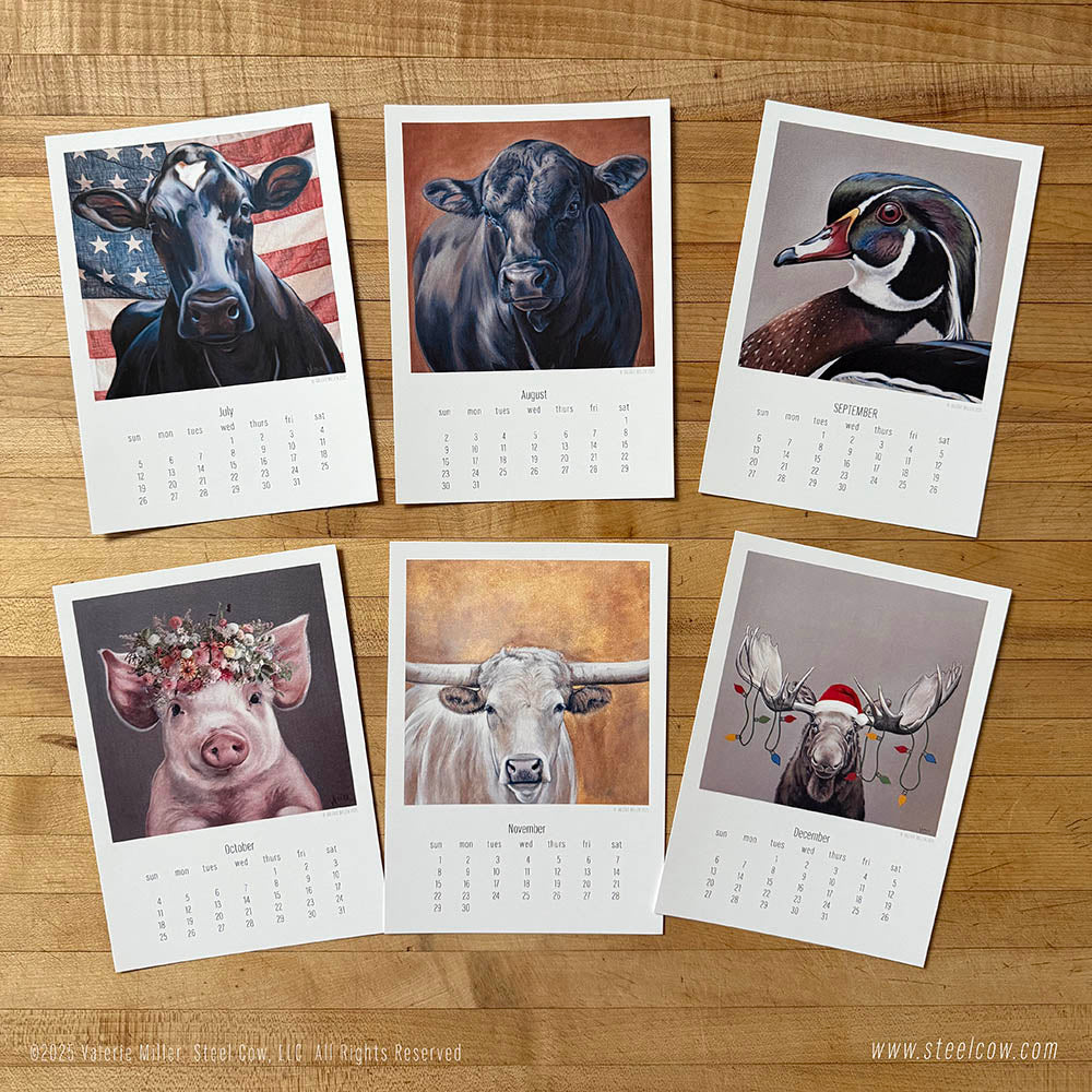 The 2026 annual Steel Cow™ calendars are here plus there is a NEW Flower Collection Calendar available for 2026! Each calendar features 12 different images by Artist Valerie Miller ready to keep you company everyday throughout the year.